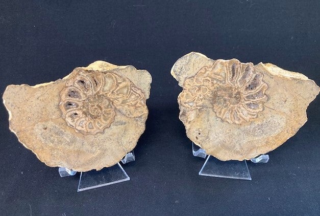 - Note: Texas fossil ammonite showing internal chambers Stands come with this fossil for both halves.