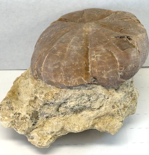 - Note: Top of fossil echinoid has oyster shells, serpula worm tubes attached randomly. Fossil still attached to matrix. See all images.