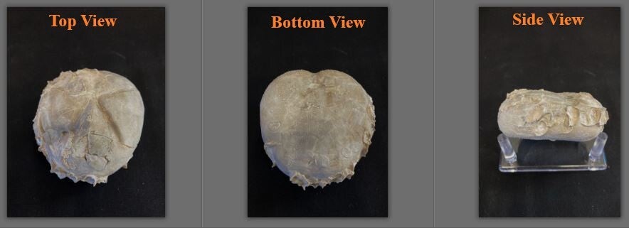 - Note: Top of fossil echinoid has oyster shells attached randomly.